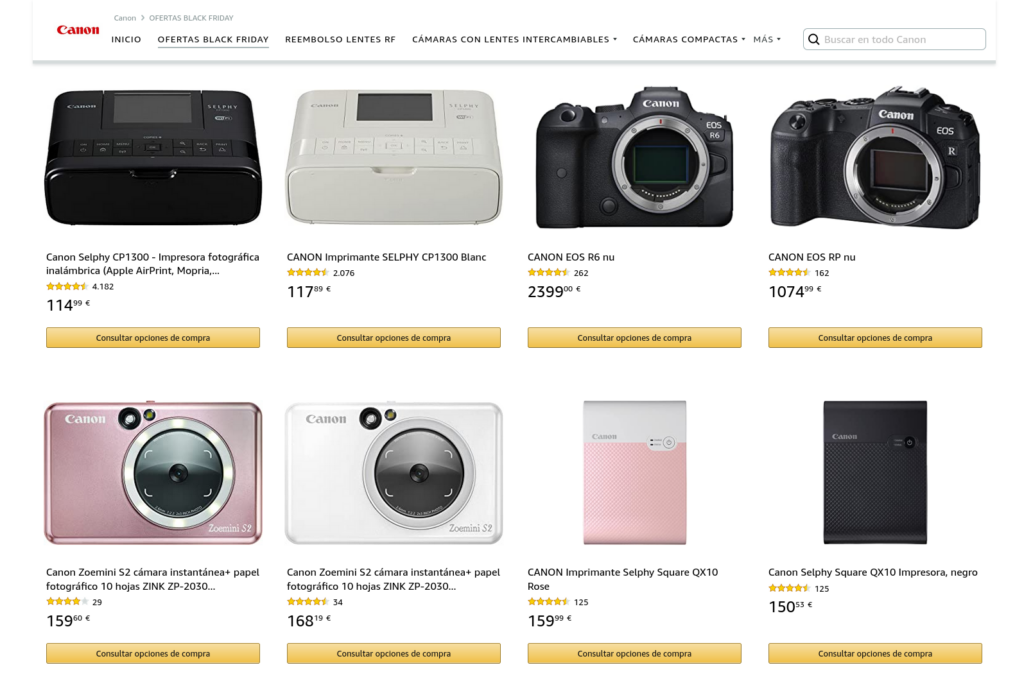Canon ha habilitado una página especial en Amazon para sus ofertas Black Friday 2022.